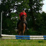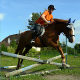 Tohoto treninku jsem se zúčastnila osobně v sedle na Kingovi...no a jak se dívám na ty fotky, tak prostě hrůza. Vzkaz pro Vyhlu: vše OK, ale koukny na ty lokty od těla nad skokem...ale nic si z toho nedělej, já to mám taky...Až budeš skákat vyšší skoky, tak tě to potáhne dopředu samo :-)